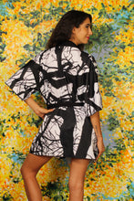 Artwork paired with luxury in this line of kimonos. Dramatic, elegant look. Perfect for special occasions, gallery shows and festivals! The Camus Winter Tree design is based on Annika Connor's watercolor painting titled Camus.